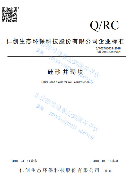 《硅砂井砌塊企業(yè)標(biāo)準(zhǔn)》
